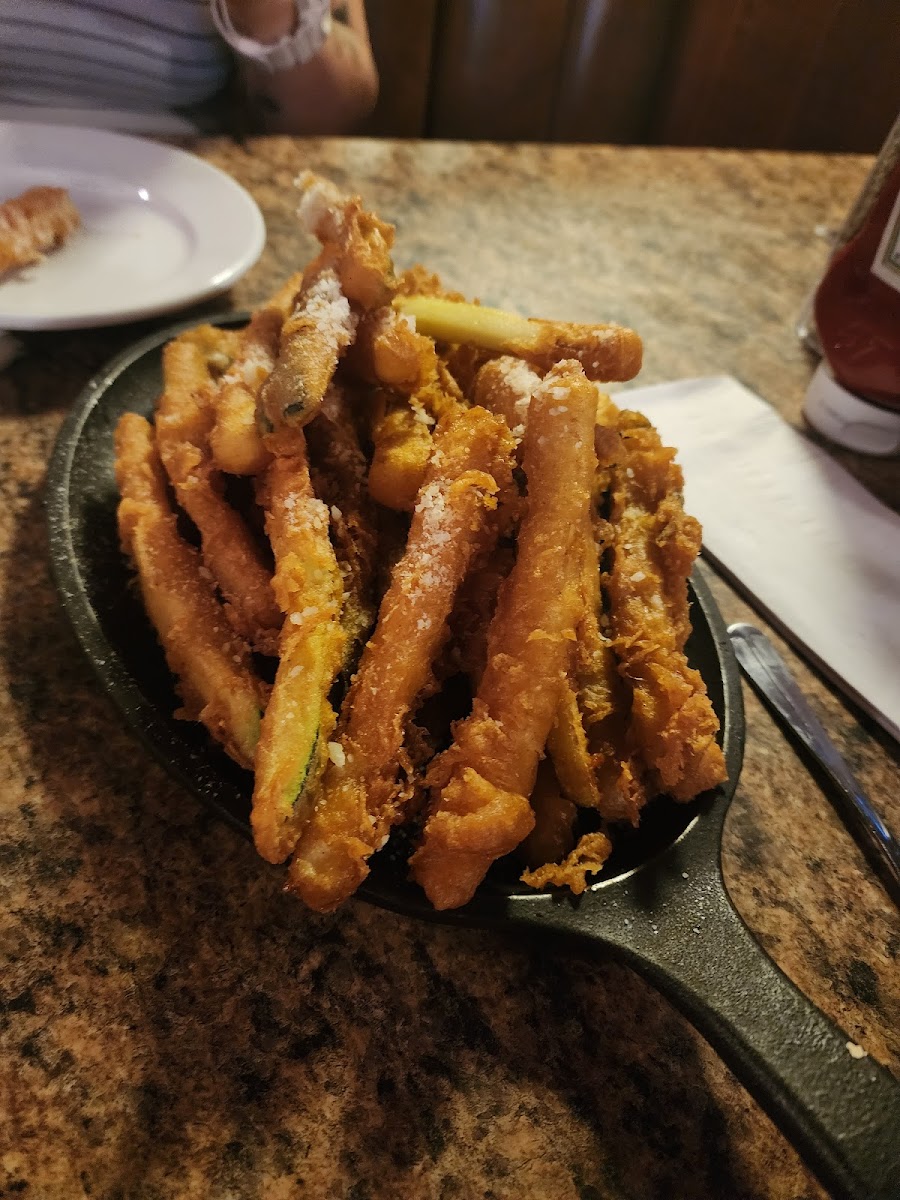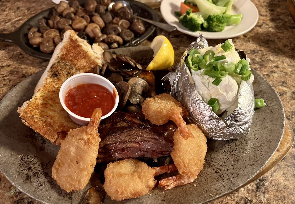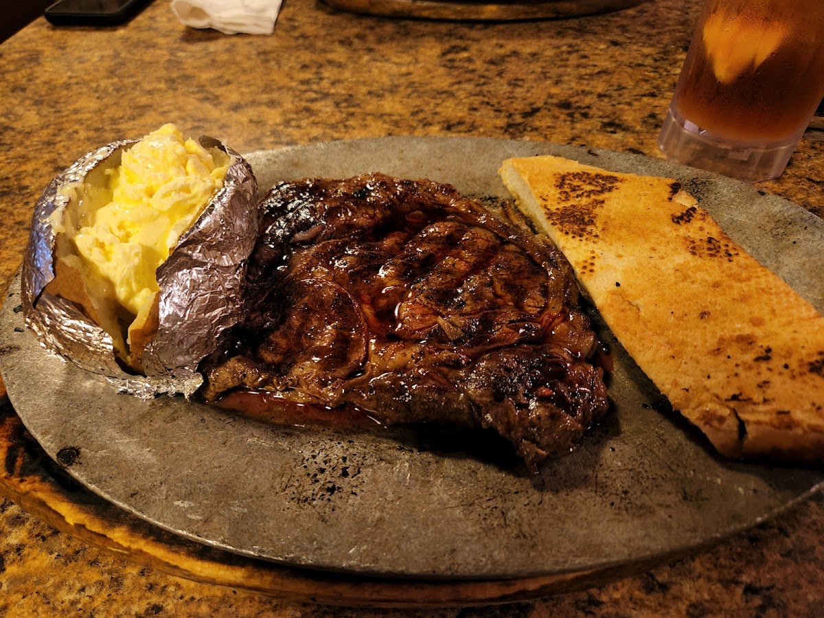 The menu leans heavily on comfort staples, with highlights like ribeye steaks paired with loaded baked potatoes, their signature onion rings, and popular combos such as the Hungry Platter or Steak ’N Shrimp specials. The food is straightforward and satisfying, geared toward people looking to enjoy a solid steak night out without fuss. House salads with honey mustard dressing and classic sides, like mashed potatoes and zucchini sticks, round out the to-go plates well.